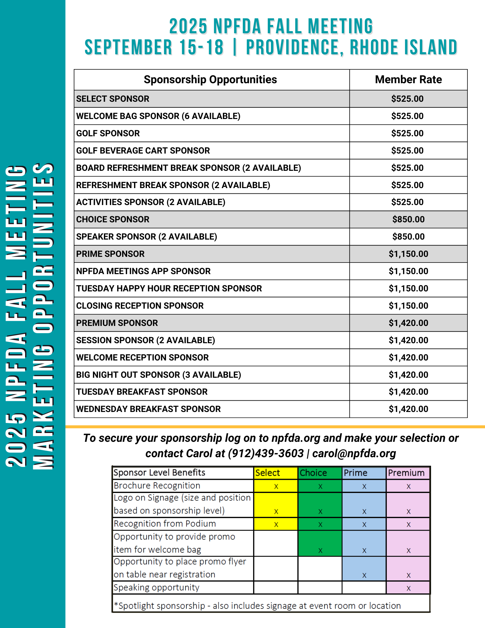 - Roundtable Discussions selected by attendees, moderated by NPFDA leadership